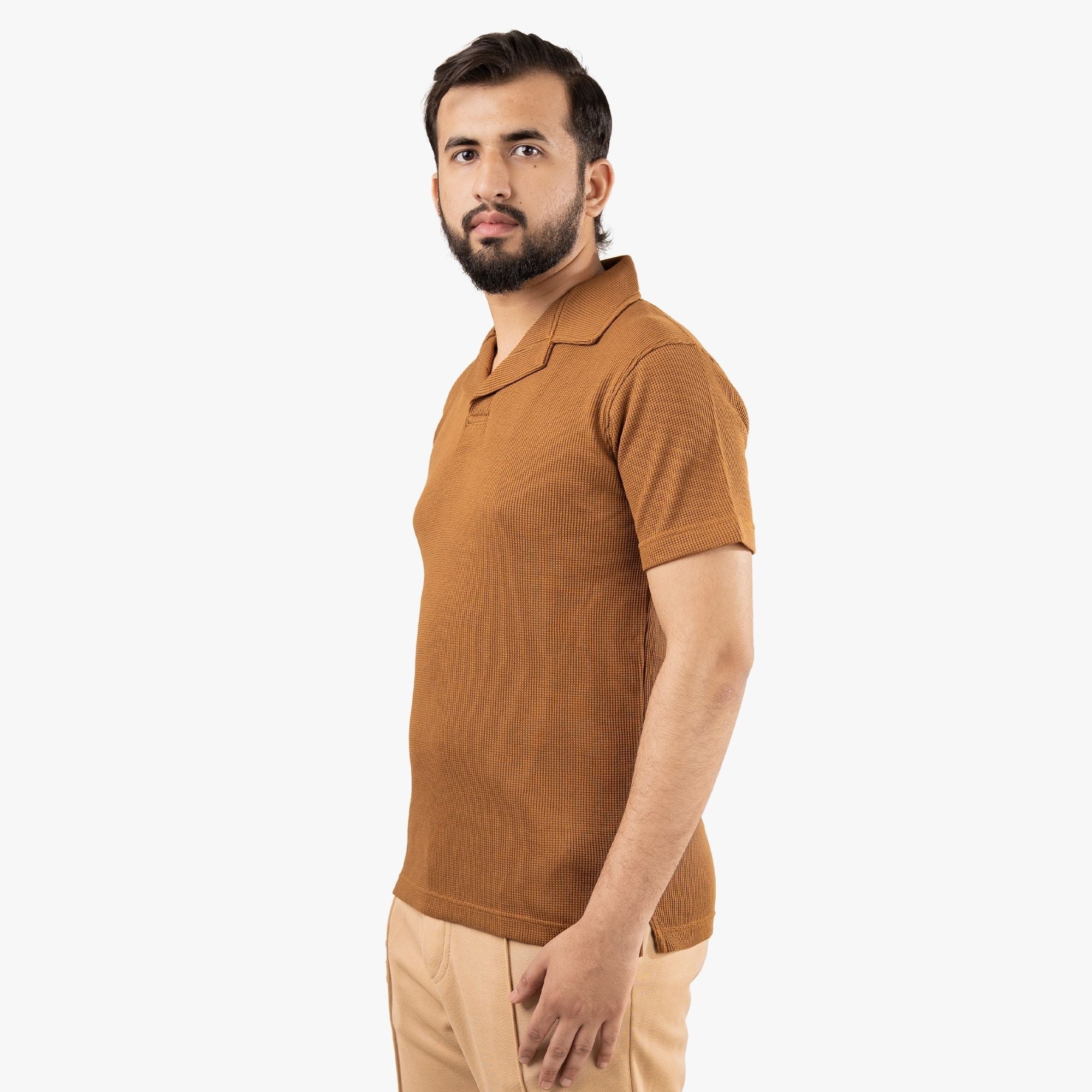 Step up your smart-casual game with our Burnt Caramel Waffle Knit Polo — a perfect blend of comfort and elevated style. Made with textured waffle fabric, this short-sleeve polo is designed to keep you cool and confident throughout the day. Its rich caramel tone adds warmth and versatility to your wardrobe, pairing effortlessly with neutrals, denims, or chinos.