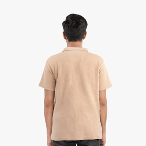 Step up your smart-casual game with our BeigeWaffle Knit Polo — a perfect blend of comfort and elevated style. Made with textured waffle fabric, this short-sleeve polo is designed to keep you cool and confident throughout the day. Its rich caramel tone adds warmth and versatility to your wardrobe, pairing effortlessly with neutrals, denims, or chinos.