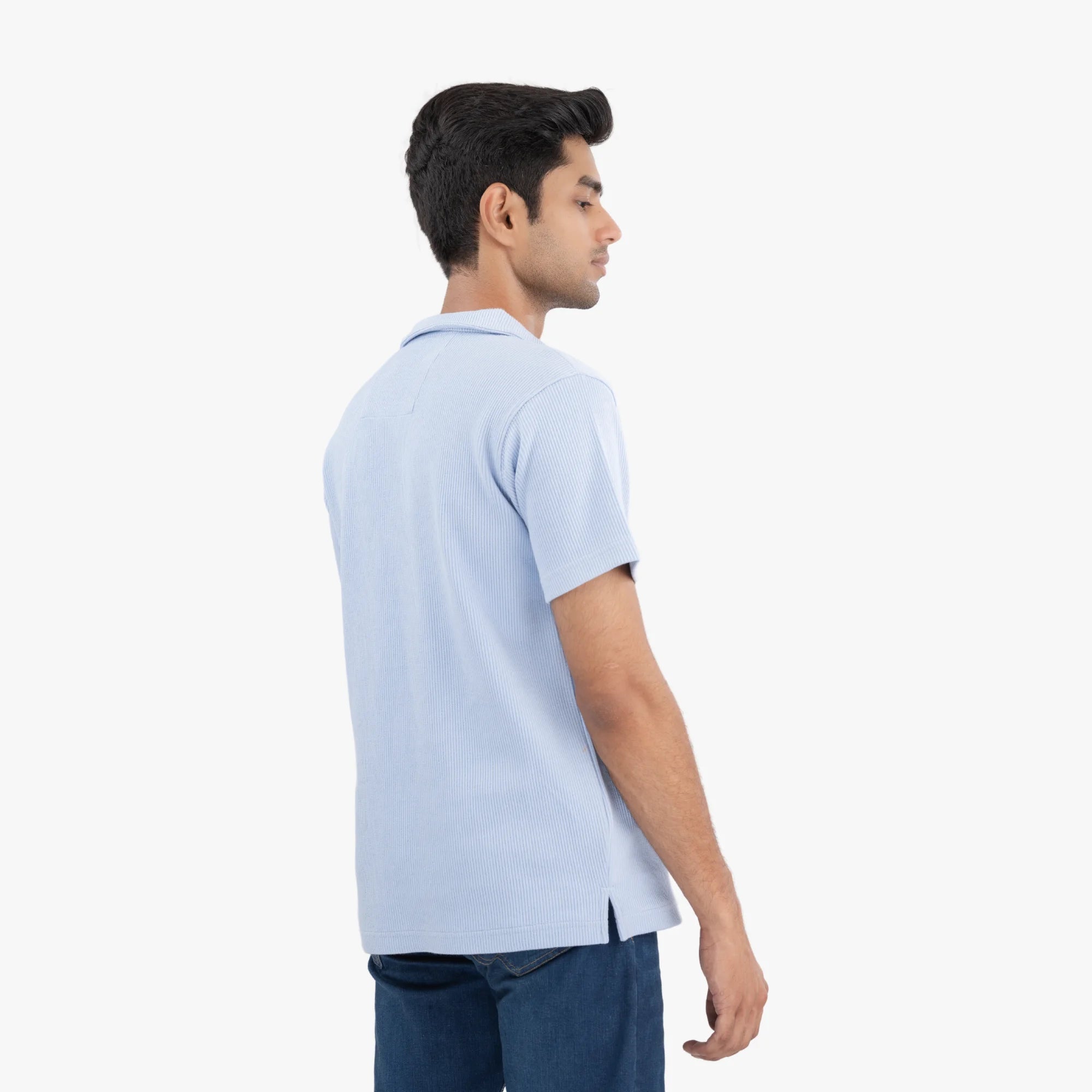 Step up your smart-casual game with our Sky Blue Waffle Knit Polo — a perfect blend of comfort and elevated style. Made with textured waffle fabric, this short-sleeve polo is designed to keep you cool and confident throughout the day. Its rich caramel tone adds warmth and versatility to your wardrobe, pairing effortlessly with neutrals, denims, or chinos.