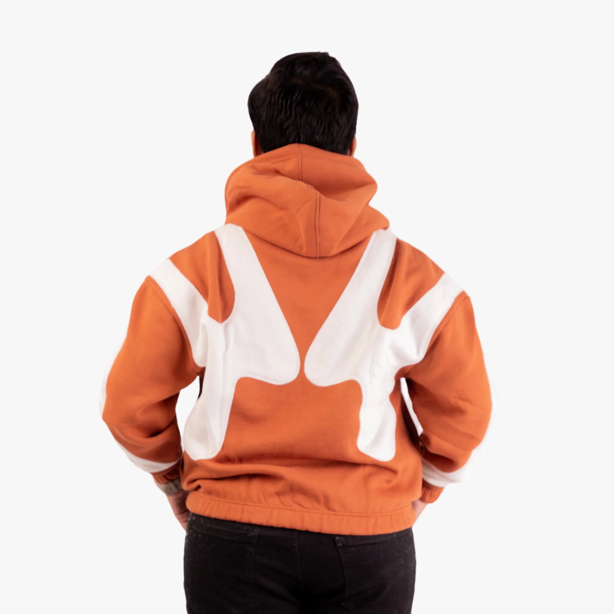 The Retro Flow Hoodie grabs attention with its bold, contemporary design, showcasing dynamic abstract patterns in striking rust-orange and white tones. Crafted from premium fleece with a 350+ GSM weight, this hoodie ensures exceptional warmth and unmatched comfort while exuding modern style.